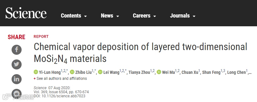 金属所任文才团队Science:突破!耐水耐氧!CVD法制备高度稳定的层状二维MoSi2N4材料