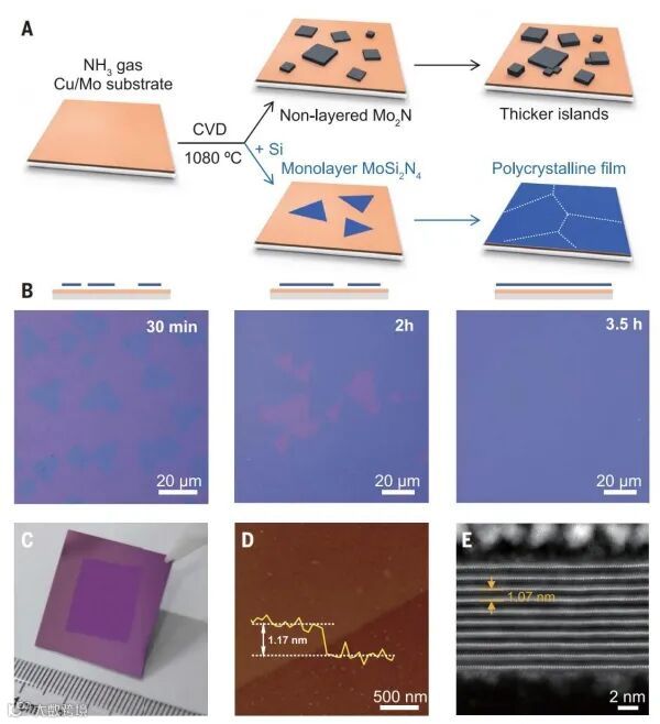 的单层实现厘米级薄膜生长,它可以看成是MoN