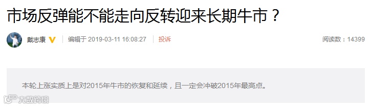 上海证大集团董事长、A股市场知名风云人物戴志康,自春节之后在微博上持续发声,表示强烈看好A股市场展开一轮长期上涨。