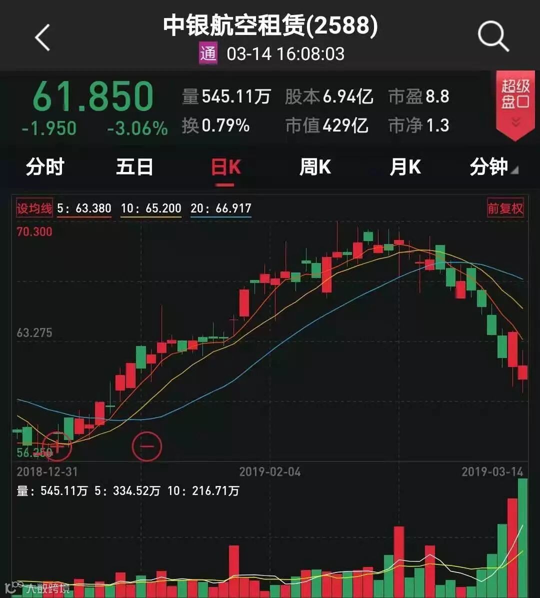 今日收盘,中银航空租赁(02588.HK)下跌3.06%,埃航空难发生以来股价已累计下跌5.28%。