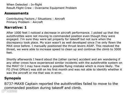 据外媒报道,美国国内航班有飞行员不止一次提交了对于737MAX8的报告,投诉该机型存在安全隐患。这些报告集中在去年10月和11月,报告中都披露了自动驾驶系统存在问题,737MAX8客机在起飞爬升过程中会突然俯冲下来。