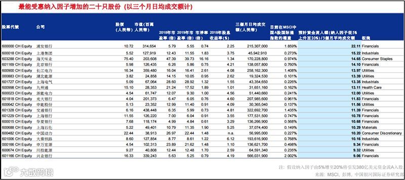 银河国际列出了最能受惠纳入因子增加的20只股票,以及有机会纳入的创业板股票候选名单。
