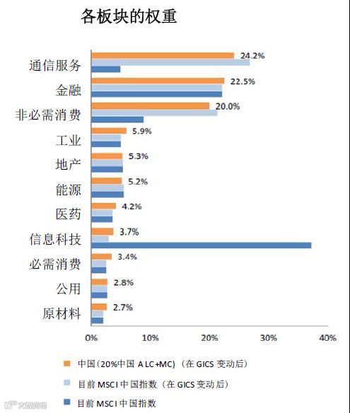 华创证券首席宏观分析师张瑜指出,A股纳入因子扩大后,通信服务、金融、非必需消费占比超过20%,将成为MSCI指数权重最高的三大板块,受益明显。