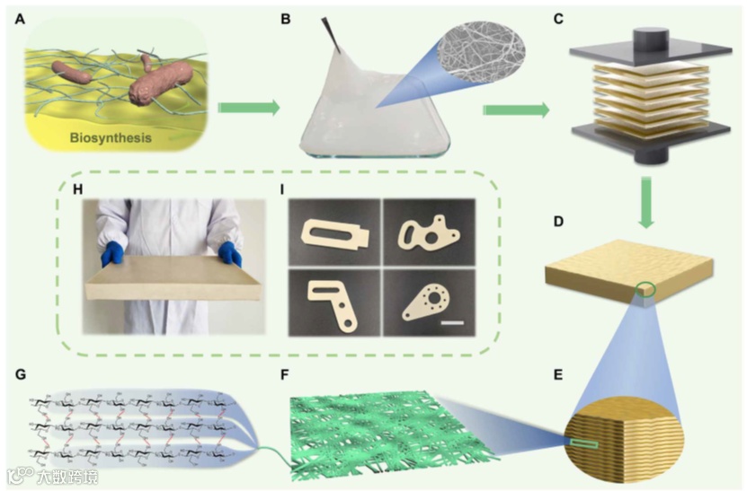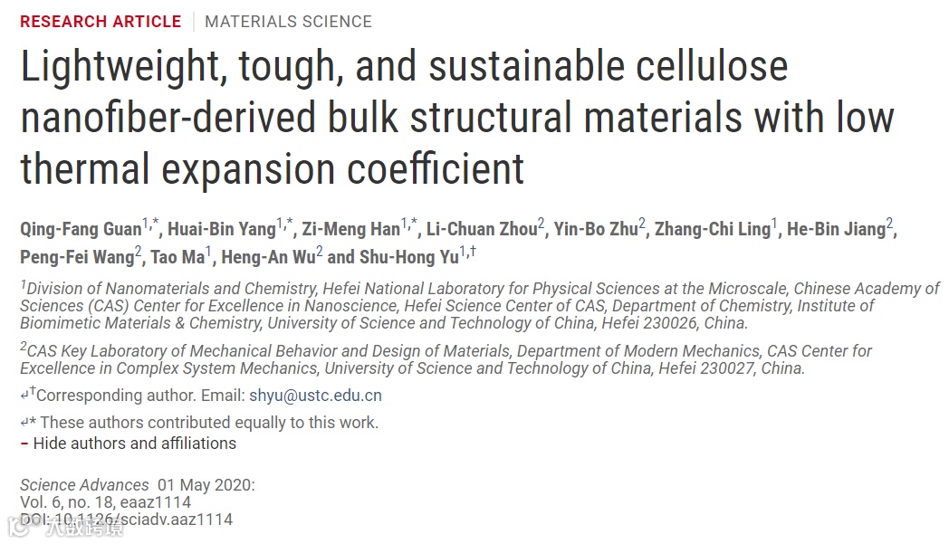 作者采用可再生细菌纤维素作为原材料,利用简便和可大规模生产的方法制备了具有又轻、又强、又韧、又尺寸稳定特性的纤维素基结构材料,在未来的建筑、交通、电子、化工、新能源和航天航空等诸多领域显示除了巨大的应用潜力。