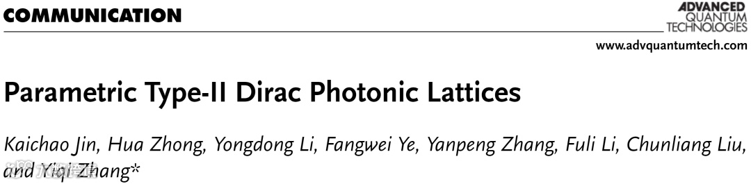 1. K. C. Jin, H. Zhong, Y. D. Li, F. W. Ye, Y. P. Zhang, F. L. Li, C. L. Liu, and Y. Q. Zhang, “Parametric Type-II Dirac Photonic Lattices,” Adv. Quantum Technol. doi:10.1002/qute.202000015 (2020).