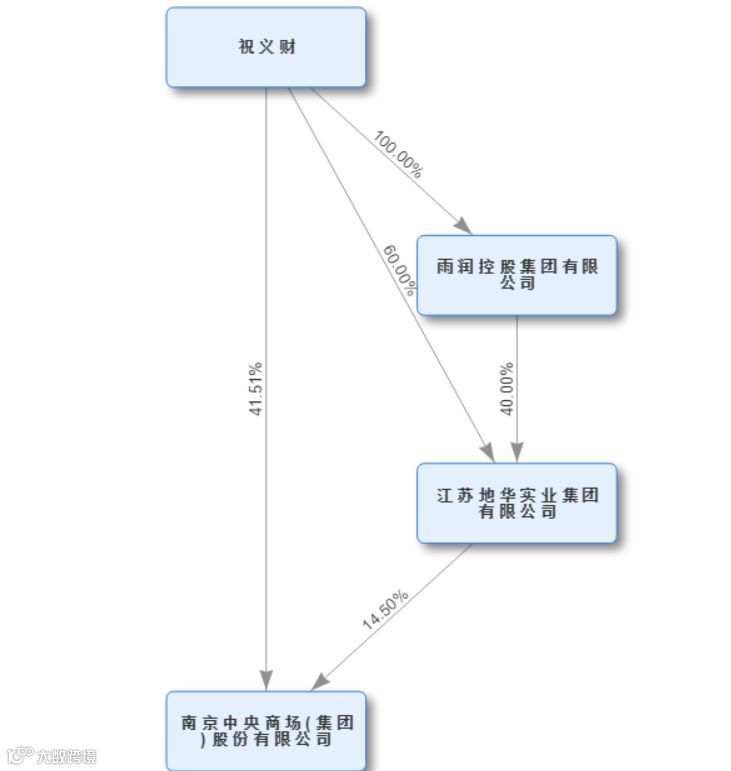 2009年,祝义财再次购入中央商场的股票,并分别收购南京国有资产经营有限公司和南京中天所持有公司11.15%和6.70%的股份。至此,祝义财共计持有中央商场47.43%的股份。