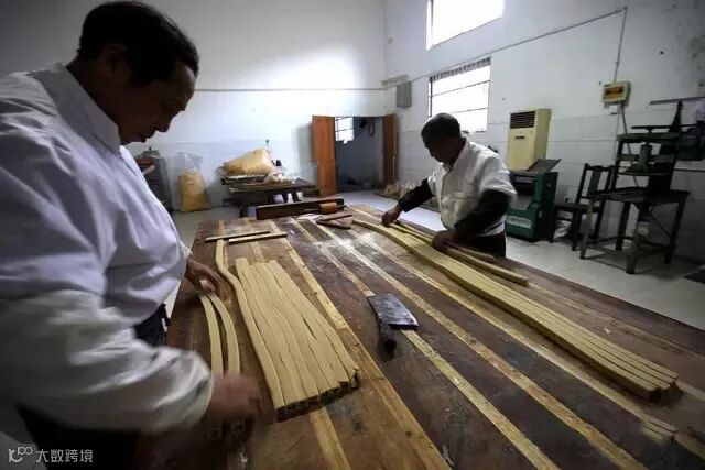 运用木制夹板加工成规则的糖条。