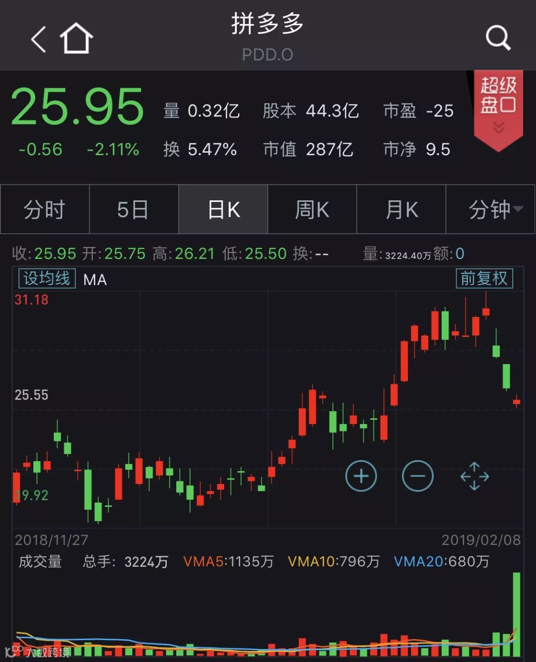 上周五,新浪上涨2.46%,微博上涨1.60%,阿里巴巴上涨0.24%,京东上涨0.04%,虎牙、陌陌上涨近2%,网易、携程网上涨近1%,百度、唯品会下跌近1%,蔚来下跌4.6%。值得注意的是,拼多多股价跌超2%,这是拼多多连续第三个交易日下跌。2月5日美股盘后,拼多多宣布“老股出售+新股融资”,总额或超17亿美元。接近此次承销的人士表示,拼多多主动保持低价发行“传统”,将后续发行价定为25美元/美国存托凭证(ADS)。2月6日、2月7日,拼多多累计下跌逾10%。