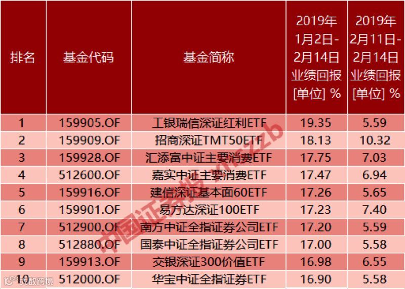 在被动投资领域,去年份额逆市大涨的ETF市场也喜迎一片红。截至2月14日,在Wind数据可统计的172只ETF产品中,年内呈现普涨格局。超四成的ETF净值上涨超过10%,前10名的产品均超过16%。