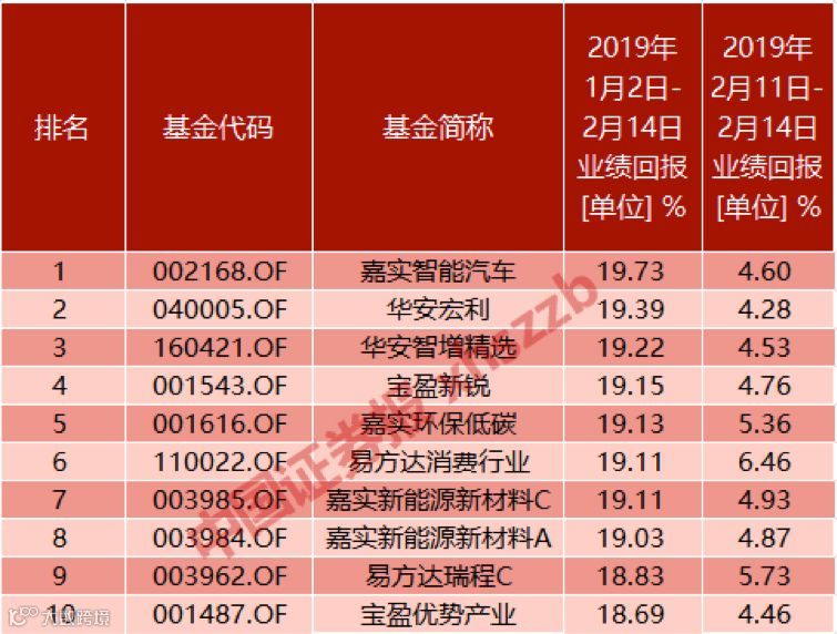 主动权益类基金净值涨幅排名(前十)