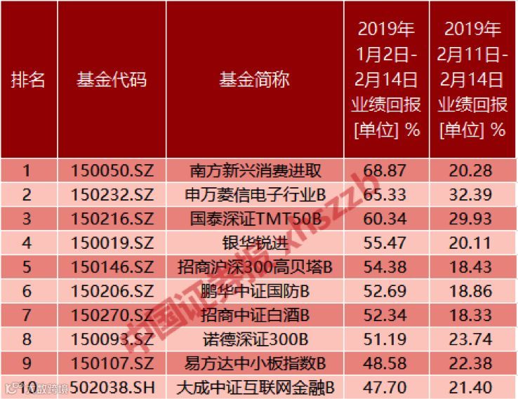 分级B基金净值涨幅排名(前十)
