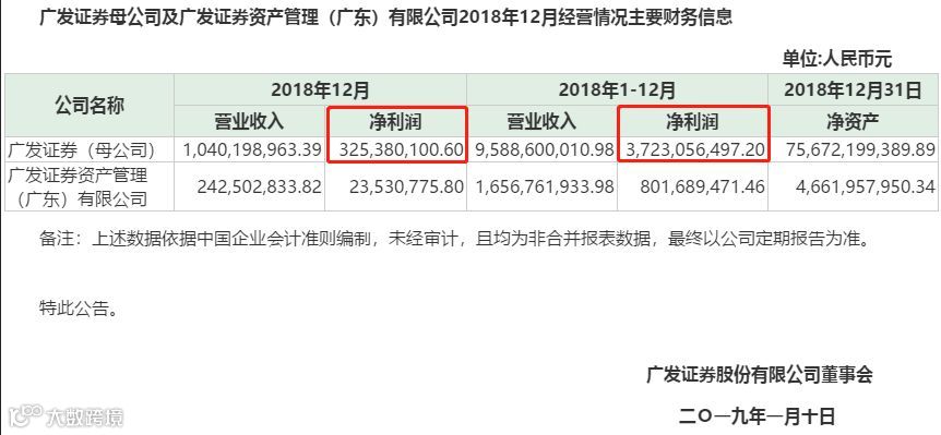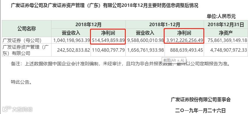公告显示,广发证券12月和全年的营业收入分别为10.40亿元和95.89亿元,调整后12月的净利润由3.25亿元调整为5.15亿元,全年净利润由37.23亿元调整为39.12亿元。