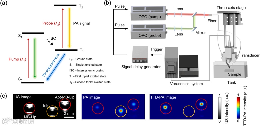 图4. 瞬态三重态差分光声成像系统的设计与体外实验。