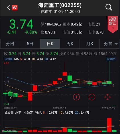 在今日跌停榜上,海陆重工具有一定代表性。28日,该股早盘迅速涨停,午间公司发布2018年度业绩预告修正公告称,2018年第三季度报告中预计归属于上市公司股东的净利润变动区间从盈利1.46亿元至1.94亿元修正为亏损1.47亿元至1.96亿元。随后该股打开涨停,收盘以平盘报收,今日早盘遭遇一字跌停。