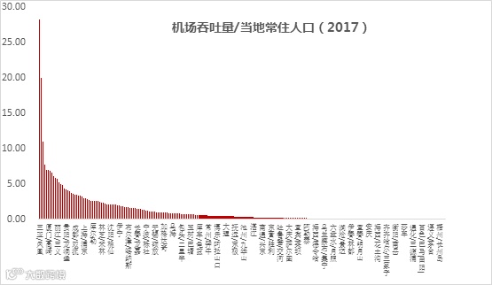 以国内机场的旅客吞吐量分布为例,看似国内机场吞吐总量保持了高速增长,但若观察一下细分数据,分化实在太大。在国内229个机场中,只有32个年吞吐量千万级别的机场,就占据了全部旅客吞吐量约78.5%,而年吞吐量在300万以下的机场多达179个,只占全部旅客吞吐总量的8.9%。