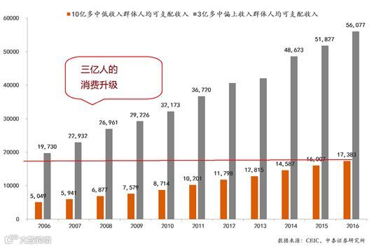 考虑到购买力平价因素,国内城镇中等偏上收入以上的3.16亿人的收入水平已接近韩国的平均水平,但人口规模接近美国。这部分人口在2017年之前,主导了中国的消费升级,但2018年以来,消费增速受收入影响,已经大幅下降。