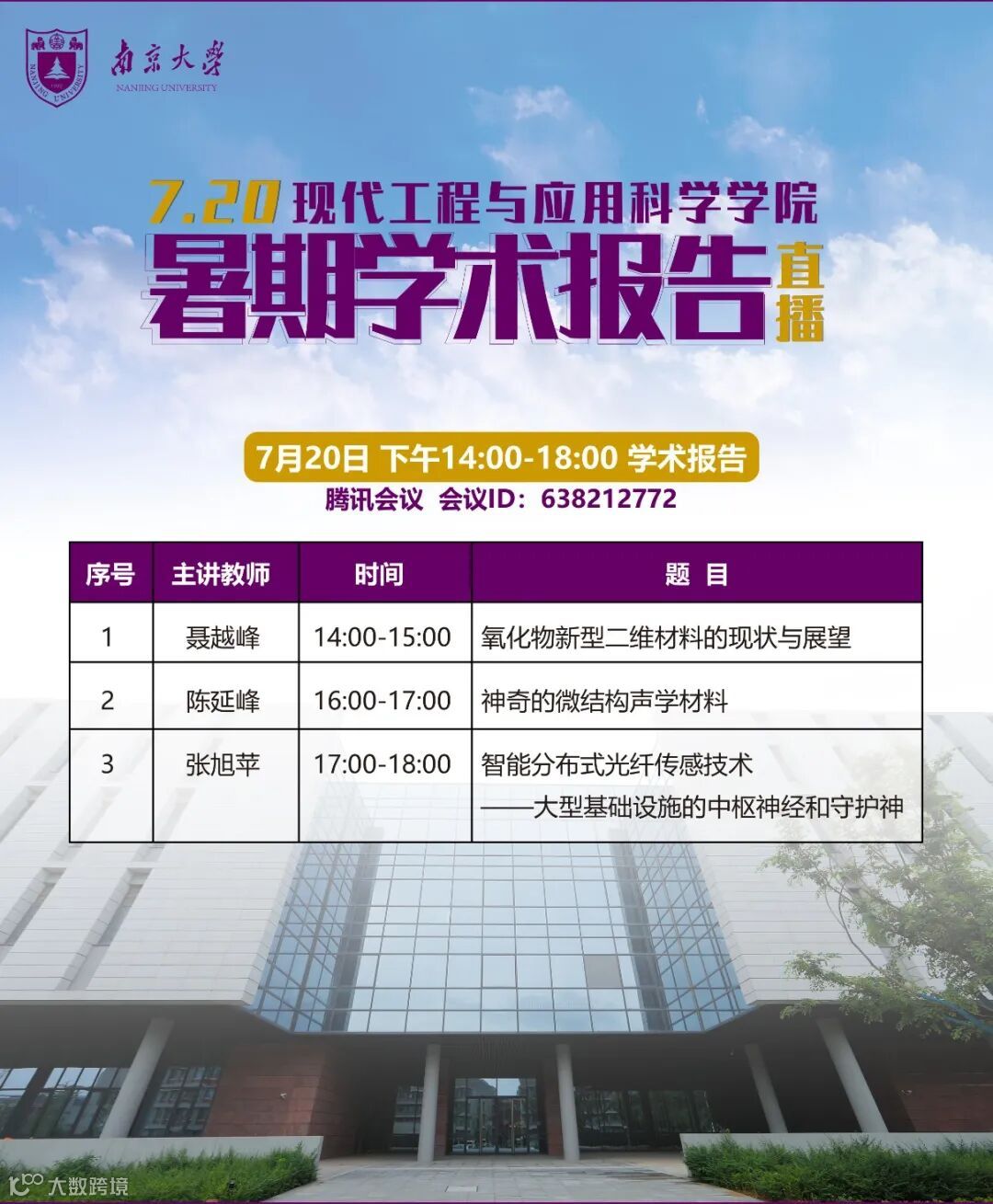 此次以“南京大学现代工程与应用科学学院暑期名师论讲坛”为主题的在线直播论坛于北京时间7月20日下午2时在两江科技评论直播间与您相见。