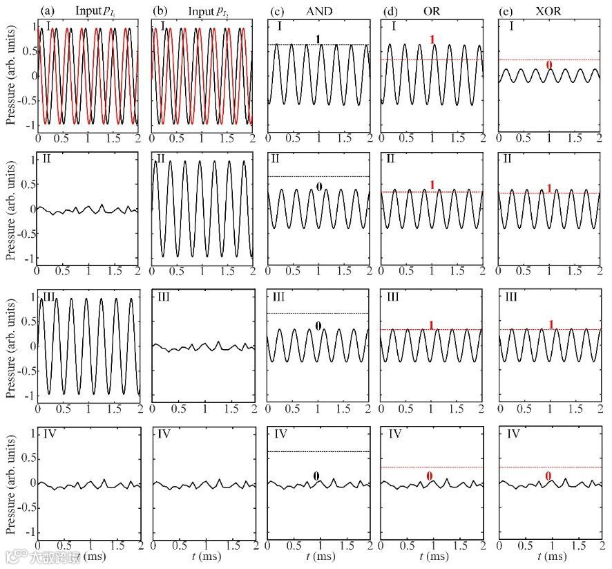 即可实现声学与门、或门、异或门以及非门,如图3所示。