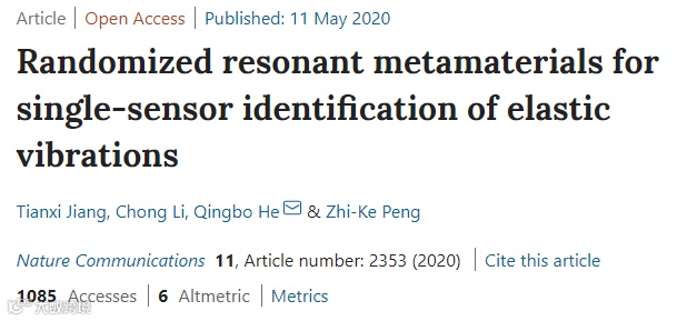 近日,上海交通大学机械系统与振动国家重点实验室研究团队提出了振动传输编码超材料概念,设计了随机化共振超材料结构,突破了单传感器振动溯源技术难题。相关工作以“Randomized resonant metamaterials for single-sensor identification of elastic vibrations”为题,于2020年5月11日在线发表在《Nature Communications》(《自然·通讯》)。