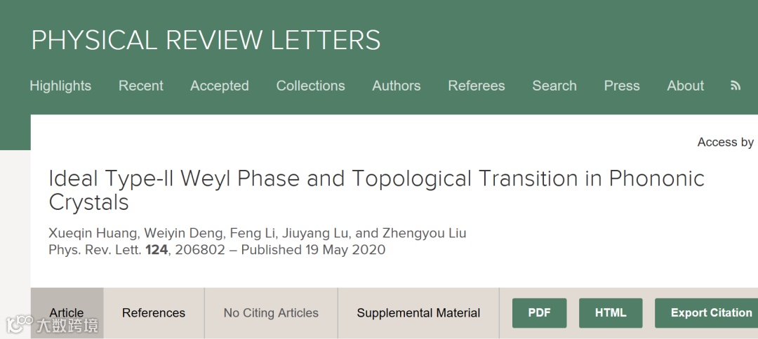 近日,刘正猷、黄学勤、邓伟胤、陆久阳研究团队在三维声子晶体中观察到了理想二类Weyl点,其中四个二类Weyl点受镜面和时间反演对称性关联而处于相同的频率,同时证实了从Weyl半金属到两种不同类型的谷拓扑绝缘体的拓扑相变。费米弧表面态存在于Weyl相的表面,费米环表面态也存在,但在两个不同的谷相的界面上。此外,实验观测了费米环表面态的反常分流输运。该研究成果以“Ideal type-II Weyl phase and topological transition in phononic crystals”为题在线发表在《Physical Review Letters》。华南理工大学黄学勤教授为论文的第一作者,邓伟胤副教授、陆久阳副教授和武汉大学刘正猷教授为论文的共同通讯作者。