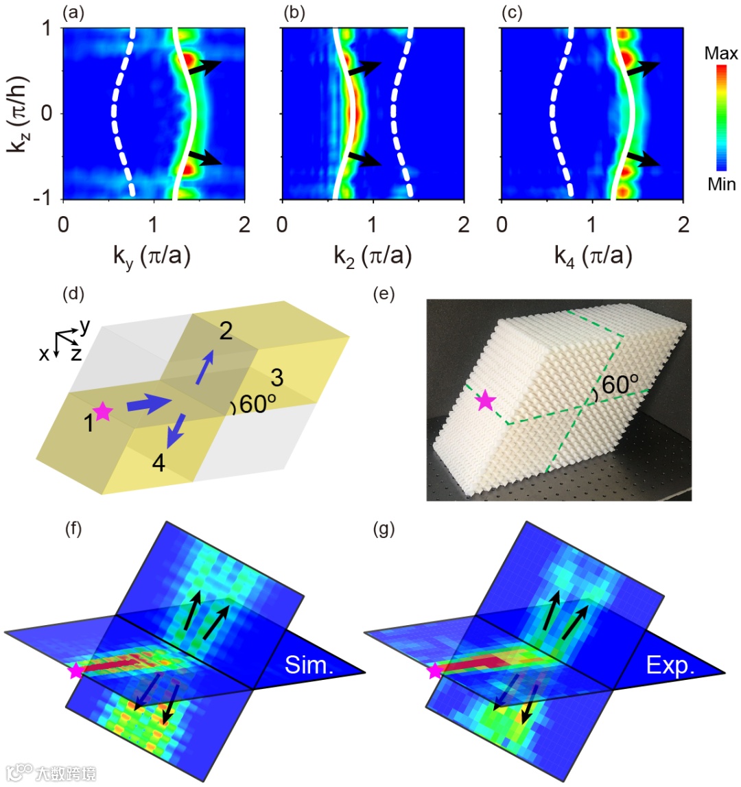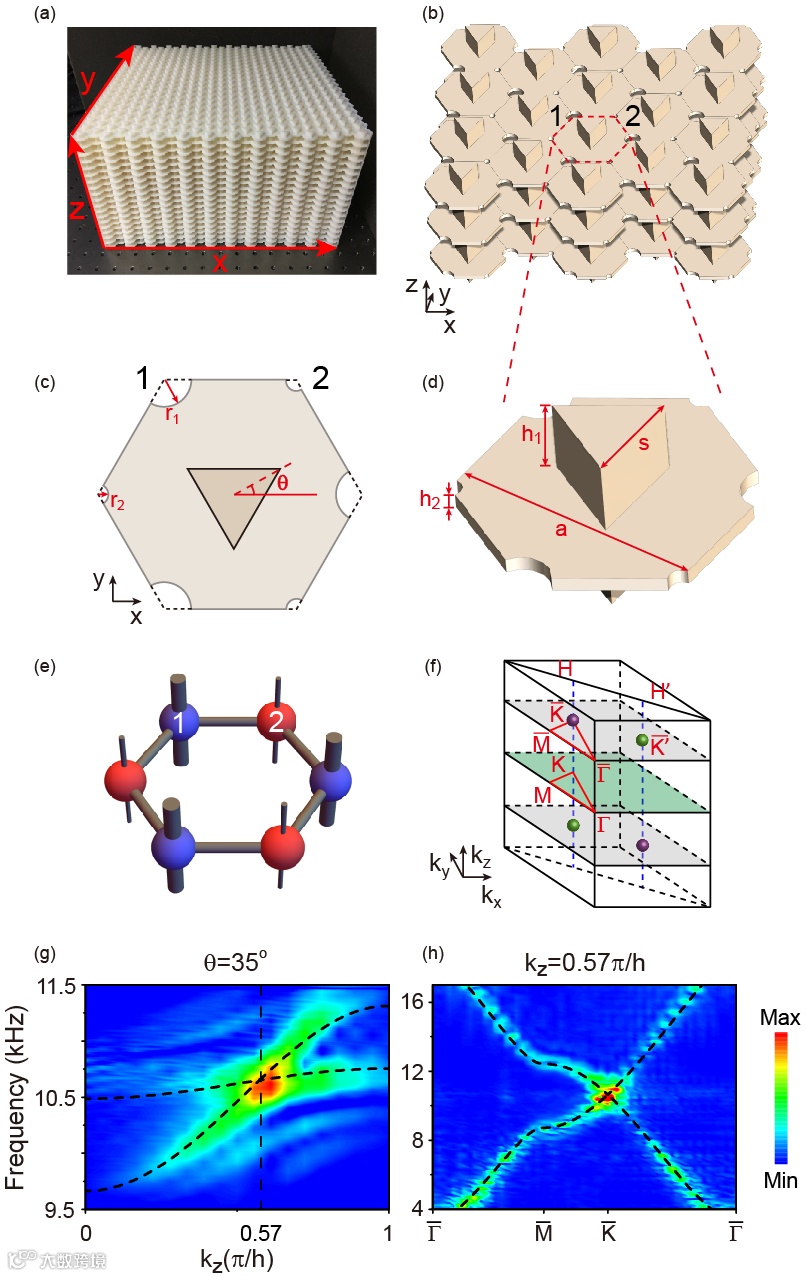 在这项工作中,研究人员实现了一个三维的Weyl声子晶体,其动量空间拥有四个理想的二类Weyl点,它们受到镜面和时间反演对称性的保护,费米弧表面态存在于Weyl相的表面。同时,研究人员通过旋转该声子晶体上的三角柱子,实现了从Weyl半金属到两种不同类型的谷拓扑绝缘体的相变,在两个不同的谷相的界面上发现了费米环表面态,其色散的等频线是闭合的,并进一步实验观测了费米环表面态的反常分流输运。