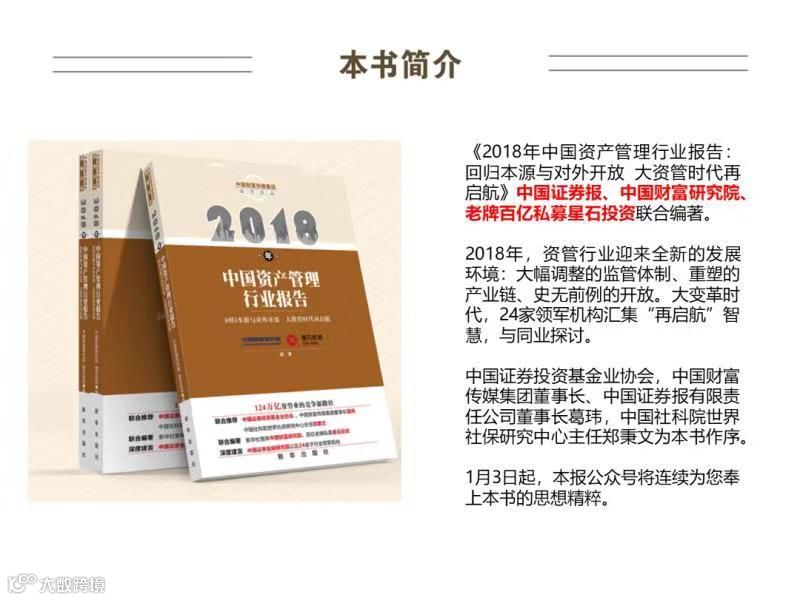 由中国证券报、中国财富研究院、老牌百亿私募星石投资联合编著的《2018年中国资产管理行业报告:回归本源与对外开放,大资管时代再启航》(以下简称“2018资管报告”)即将发布。