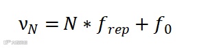 光学频率梳可简单理解为频率和相位稳定的锁模激光器。锁模激光器产生周期性的激光脉冲串。时间域内的周期性的激光脉冲序列转换到频率空间里,则可表示为包含了等间隔频率的光谱。该光谱的整体强度由激光秒冲的包络调节。因而在频率域其类似一把光学尺子,最小刻度等于锁模激光的重复频率frep (周期的倒数。尺子起点与零频之间有一定的差值f0 。这个差值由激光脉冲的载波和包络之间的相对相位来直接决定。因而,简单的描述光学频率可将其第N个频率VN表示为重复频率frep 和f0之和: