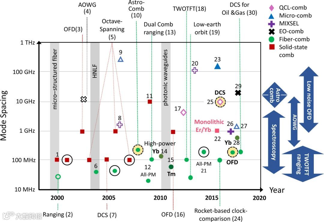 图2 光学频率梳光源近些年的发展趋势