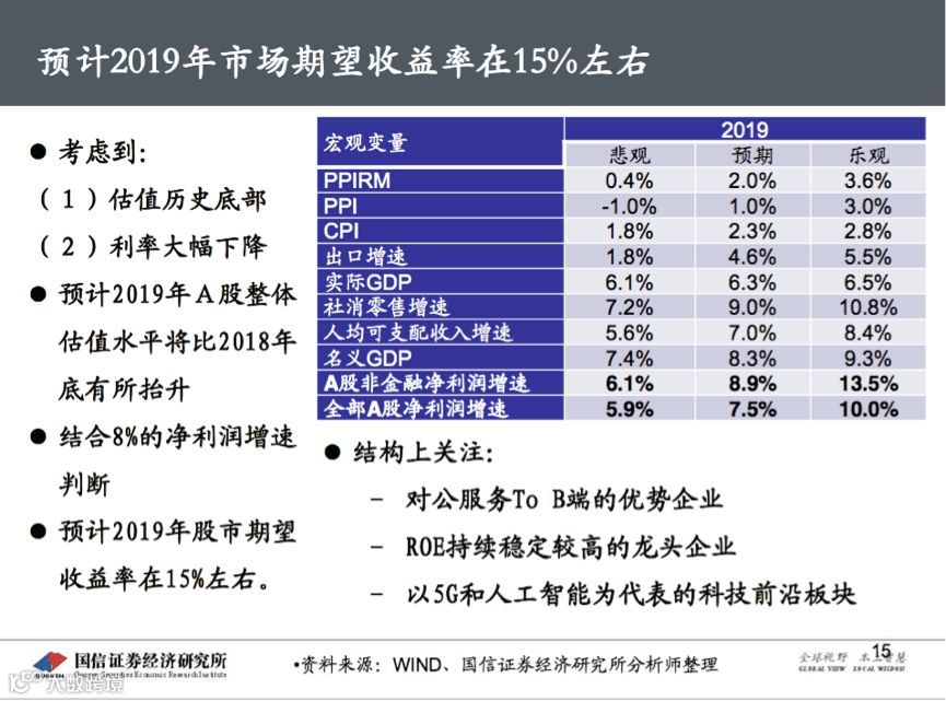 2019年股市期望收益率15%