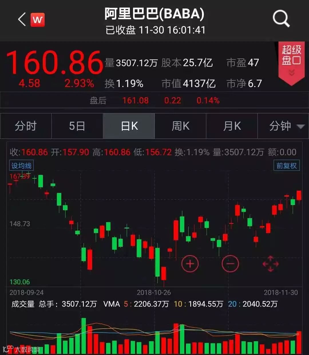 中概股多数收涨 阿里巴巴涨2.93%