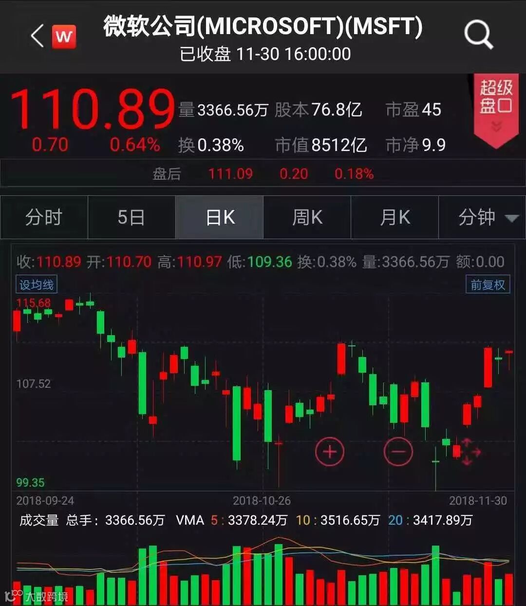 微软上周五市值超过苹果,成为全美市值最高的公司。苹果股价下跌0.54%,市值8475.28亿美元;微软股价上涨0.64%,市值为8512.16亿美元。