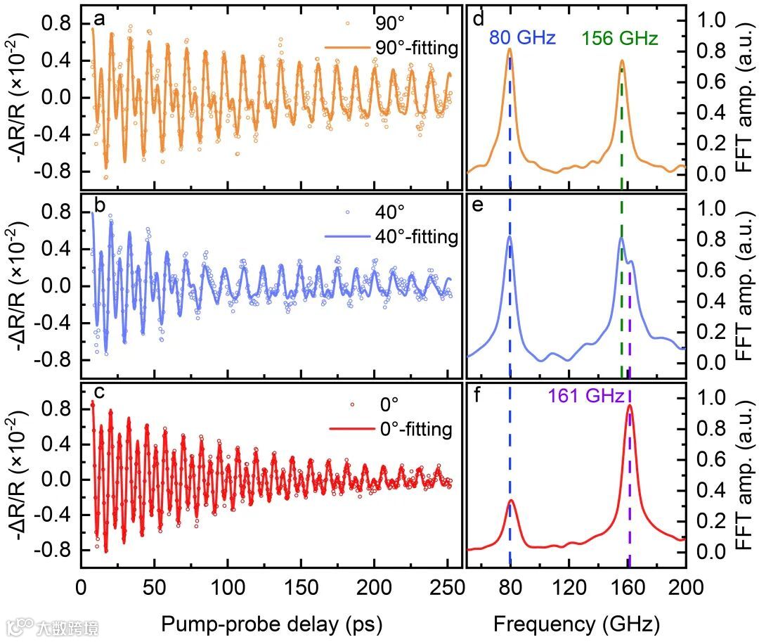 图1 飞秒激光诱导的(011)-VO2/TiO2异质结中强相干剪切声子(80 GHz)和纵向声子(161 GHz)。