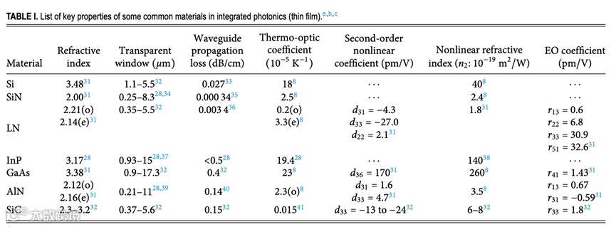 表1:常见集成光学材料的物理参数