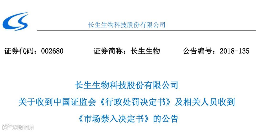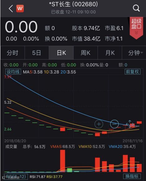 11月5日,停牌两个月的长生生物复牌,股票简称由“ST长生”变更为“*ST长生”,之后连续3个“一”字跌停。