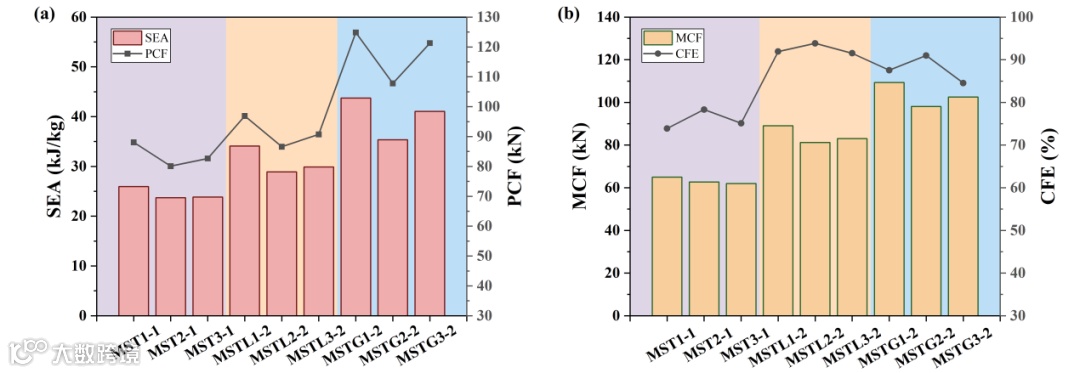 本文提出了两种顶角增强原理与自相似原理相结合的多胞方管设计策略(全局自相似设计策略和局域自相似设计策略),设计了6种新型二阶自相似多胞方管(图1)。通过有限元模拟和实验测试,分析了自相似多胞方管的能量吸收性能与变形模式。研究结构表明,本文所提出的二阶自相似多胞方管在顶角胞元处引入了额外的塑性铰线,具有波长更短的皱褶半波长,且皱褶间相互挤压,进一步增大了塑性变形,导致更大的比吸能、更高的能量吸收效率和更稳定可控的变形模式。此外,本文基于Abaqus图形交互程序研究了两种自相似设计策略下多胞方管的能量吸收特性,研究结果表明,二阶多胞方管中内部肋板数量对多胞管吸能特性的影响更为显著;相同自相似策略设计的二阶多胞方管中,肋板厚度在增强吸能特性方面发挥了主导作用。同时,本工作基于简化超折叠单元理论对多胞方管的平均压溃力理论模型进行了推导,并利用非支配遗传算法NSGA-II对耐撞性最优的二阶自相似多胞方管MSTG1-2进行了多目标优化,获得相应帕累托前沿解集,以适应不同工况下的耐撞性需求。本工作所提出的多胞方管设计策略可以为设计具有优越力学性能的轻质多胞管提供指导,具有重要的理论意义与应用价值。