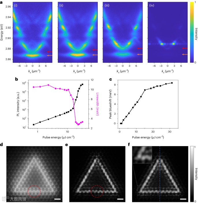 近日,美国伦斯勒理工学院的Wei Bao助理教授与加州大学伯克利分校的张翔教授团队合作展示了在室温且没有任何外部磁场的情况下具有极化子凝聚的拓扑边界态。他们通过使用具有谷霍尔晶格设计的激子CsPbCl3卤化物钙钛矿克服了材料限制。该极化子晶格具有18.8 meV的大带隙,并表现出强烈的非线性极化子凝聚,在临界泵浦密度上具有清晰的长程空间相干性。该非线性多体光子系统的几何参数和材料成分原则上可以进行定制以研究其他准粒子间相互作用的拓扑现象。相关研究成果发表于期刊《Nature Nanotechnology》。(张甜)