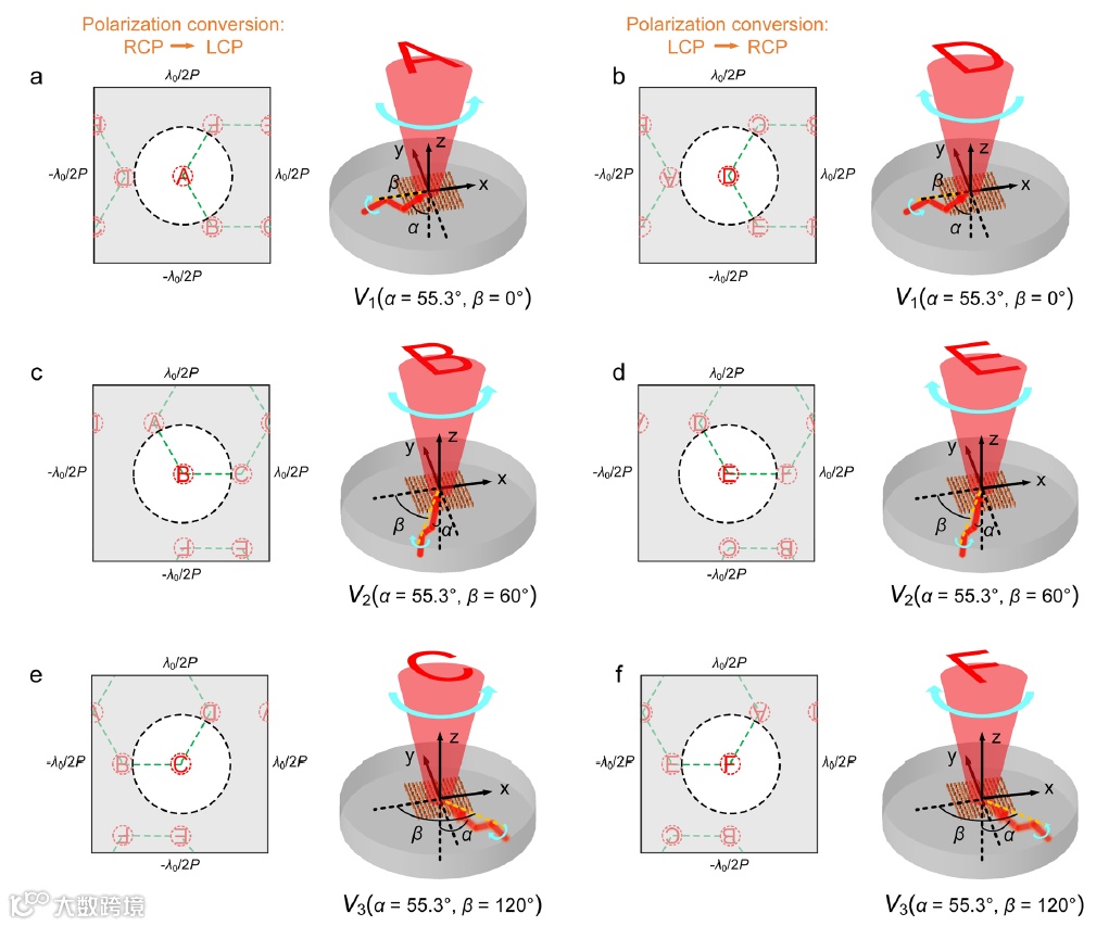 2、用于六通道无串扰全息投影的宽带自旋和角度共复用波导超表面