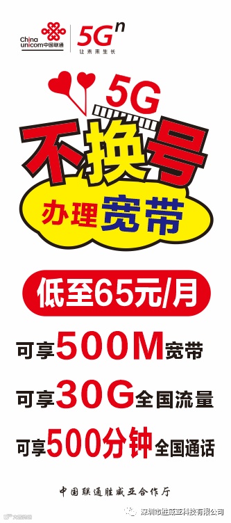 携号转网不换号办理宽带 500M 低至 65元/月 !!!