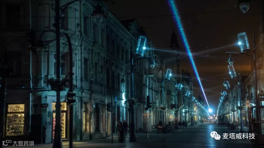Yann Nguema 是一位来自法国的数字艺术家,他参与了本次灯光节,并在一条名为 Piotrkowska 大道上设计了一组由激光和霓虹灯组成长700米的巨型灯光装置作品。