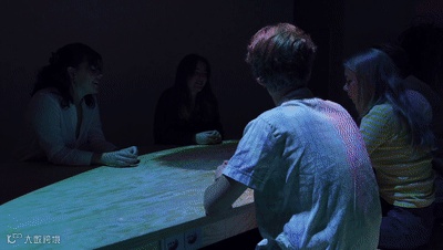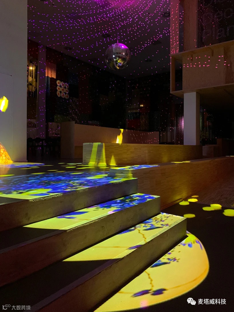 踏入学校食堂仿佛误入迪斯科厅,无数圆形光斑变换着图像,缓慢移动着、旋转着,仿佛漫漫星海包围着你。
