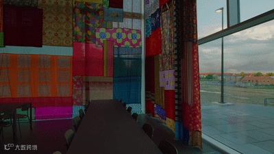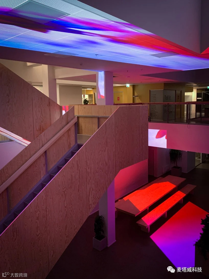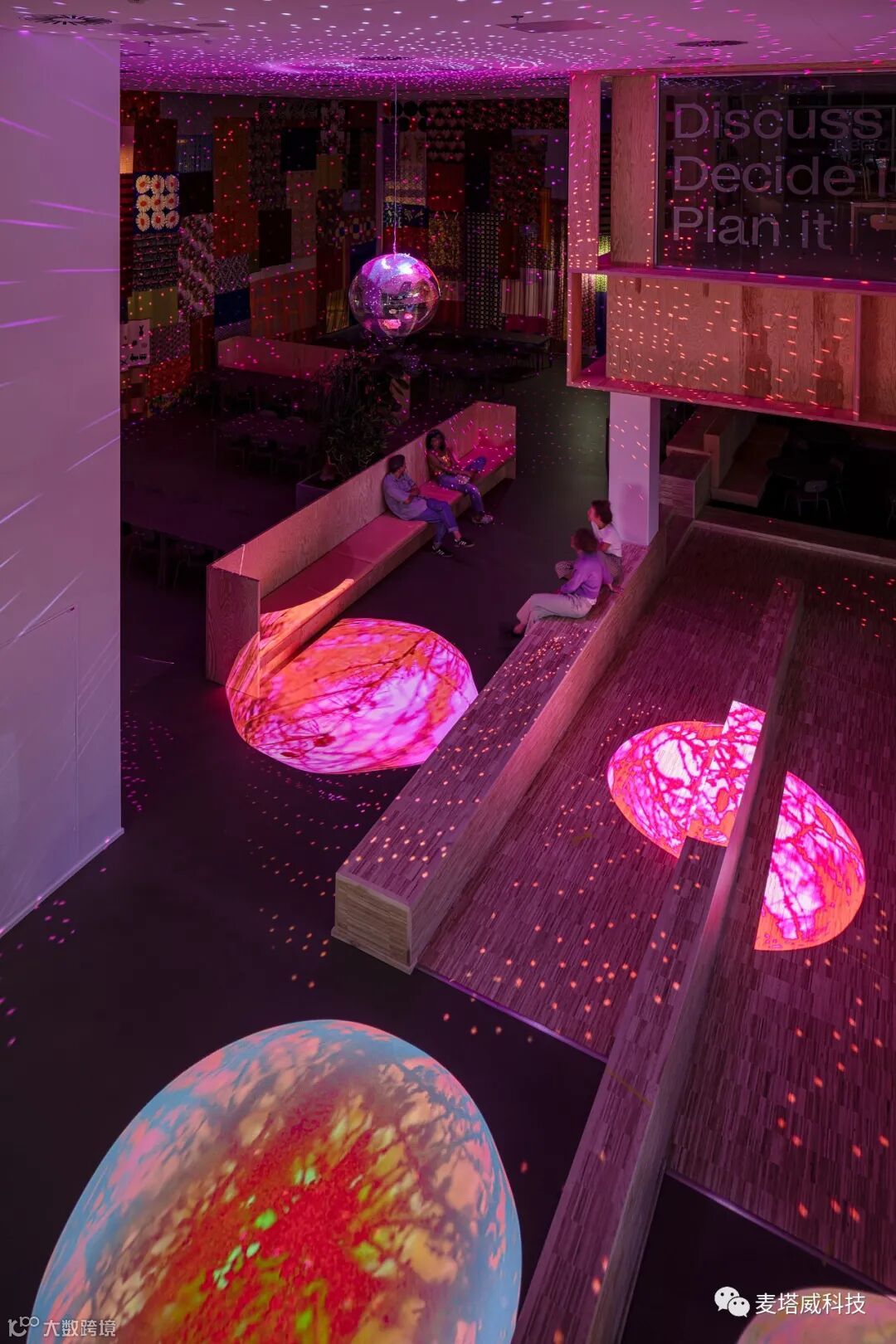 通过电脑编程,空间内部逐渐弥漫出奇幻的光彩,它们随着天色渐沉而愈加浓烈。