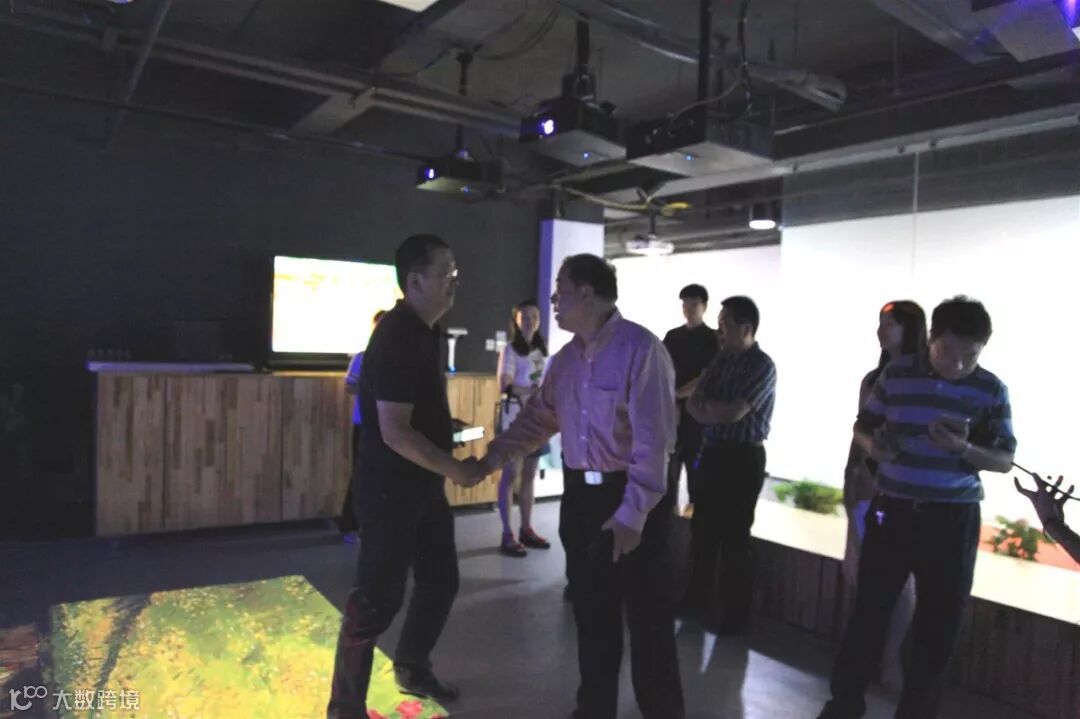 在麦塔威公司展厅,蔡教授向调研团介绍了公司的发展运营情况和产学研结合情况,并展示了光影秀创意项目。