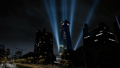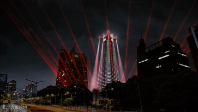 红色激光自大厦底部而起