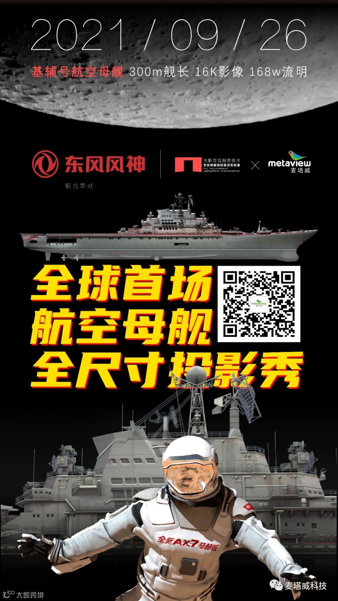 本场投影秀将以基辅号航空母舰为载体,联合东风风神汽车,共同呈现一场光影视听盛宴。届时,东风风神也将现场发布被誉为“公路火箭”的AX7马赫版新车型。
