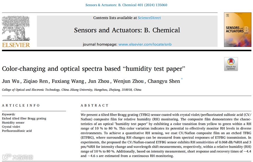 Wu J, et al. Color-changing and optical spectra based “humidity test paper”[J].Sensors and Actuators B: Chemical, 2024, 401: 135060.