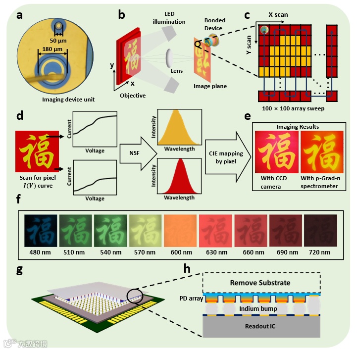 图4: 渐变带隙PN结光谱仪的成像结果与阵列设计
