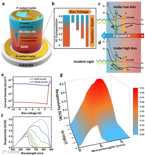 图2: 渐变带隙PN结光谱仪的结构概述与电学性能