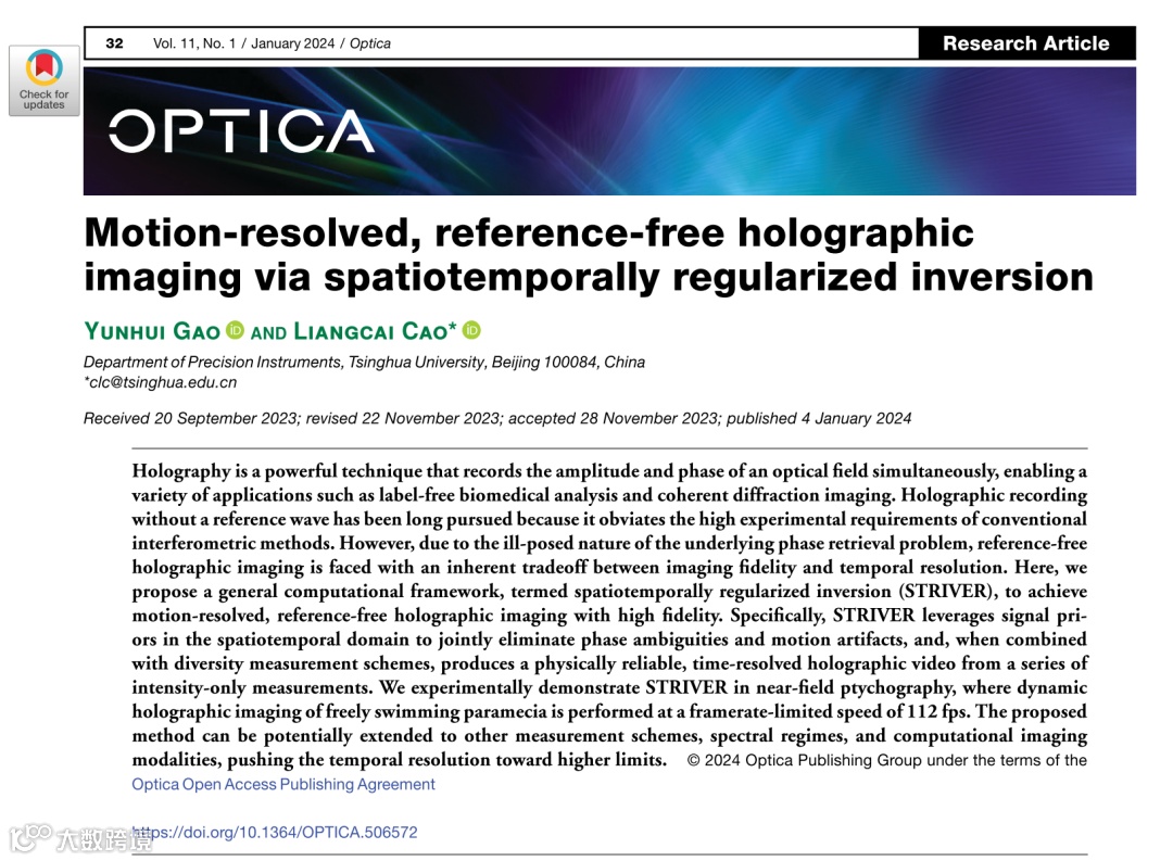 清华大学精密仪器系博士生高云晖为论文第一作者,曹良才教授为论文通讯作者。该研究得到了国家自然科学重点基金项目的支持。