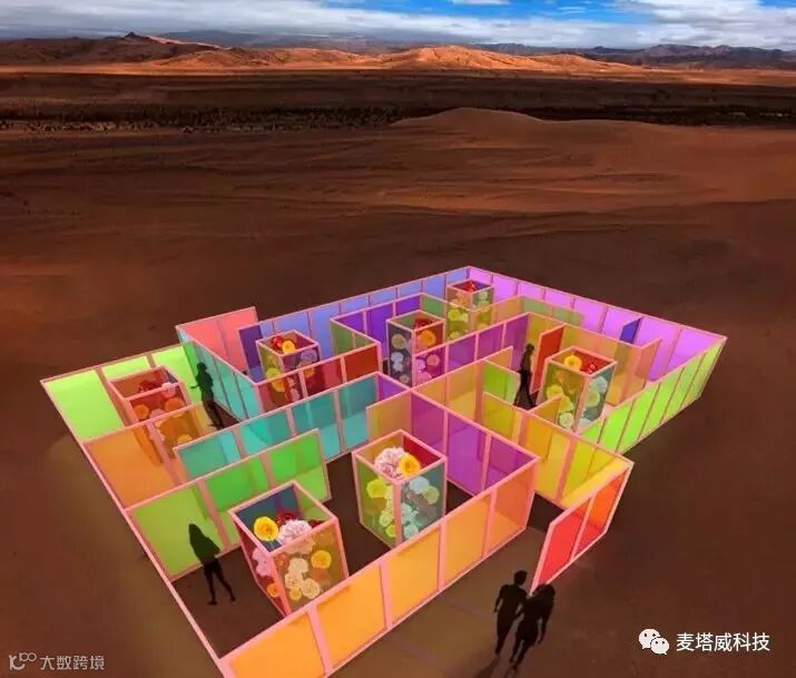 用最流行的PVC镭射材质,建造起一座彩色迷宫。透过色彩的隔膜所映入眼眸的仿佛是一个纯粹的有色世界,蜿蜒曲折的形态下呈现出它独一无二的纹样,谱绘出色彩斑斓、交织叠合的生命现象。