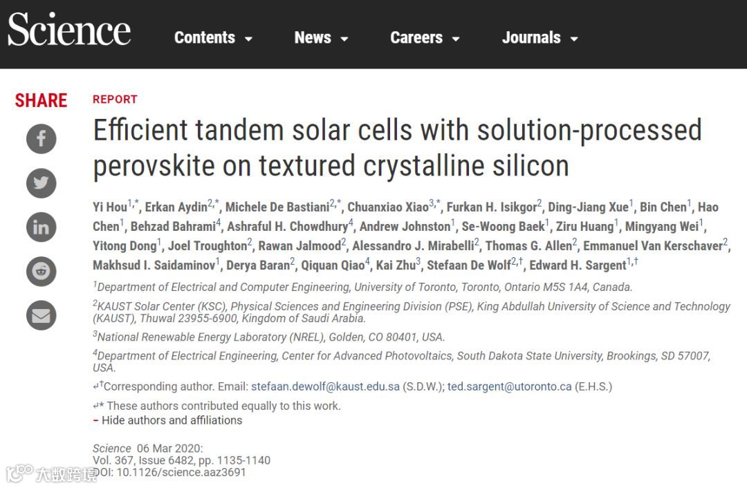 1. Science:25.7%效率!高效钙钛矿-硅串联太阳能电池